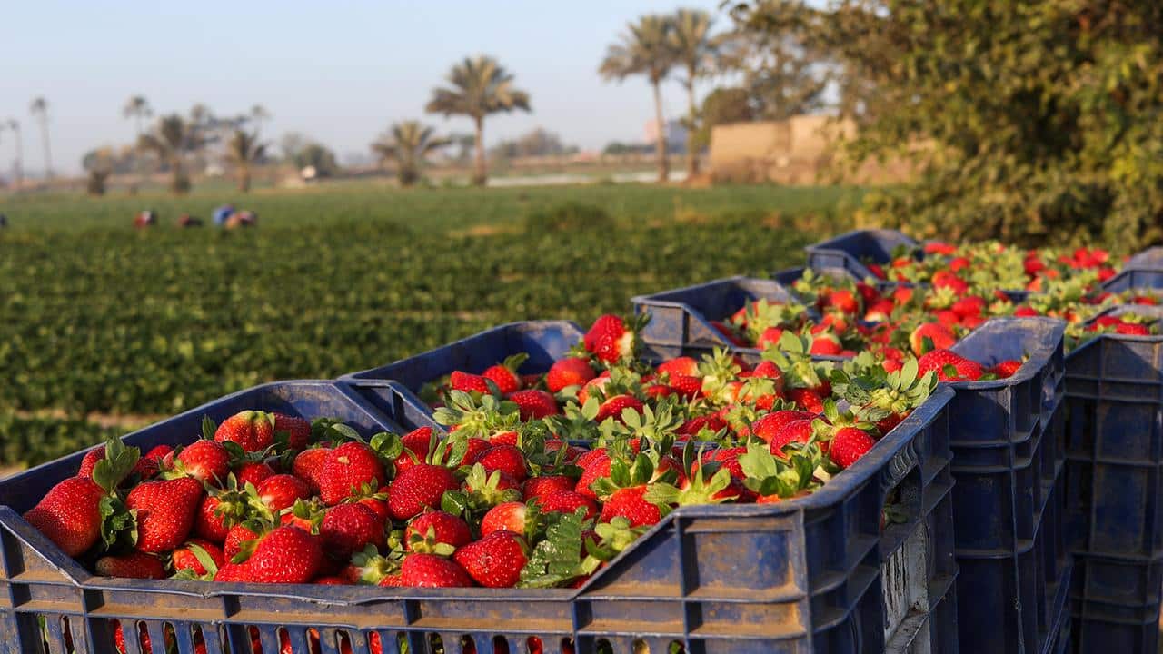 En été, les fraises en Égypte seraient bien trop chaudes; c’est pourquoi la récolte a lieu en hiver. Cela contribue également à rendre les fraises égyptiennes attractives pour l’export vers l’Europe. Une autre raison: les coûts de main-d’œuvre bas en Égypte. Ils permettent que les fraises restent relativement abordables malgré les frais de transport.